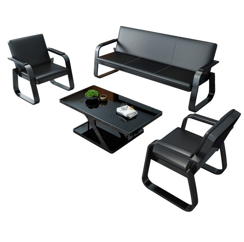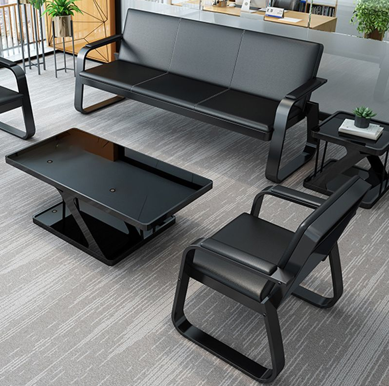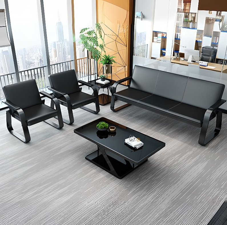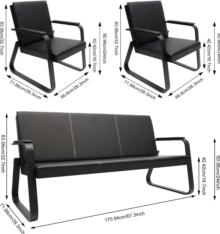 The sofa is upholstered in high-quality black faux leather or fabric, which is not only visually appealing but also easy to maintain. Its sophisticated finish complements various office or reception décors while resisting stains and wear.
