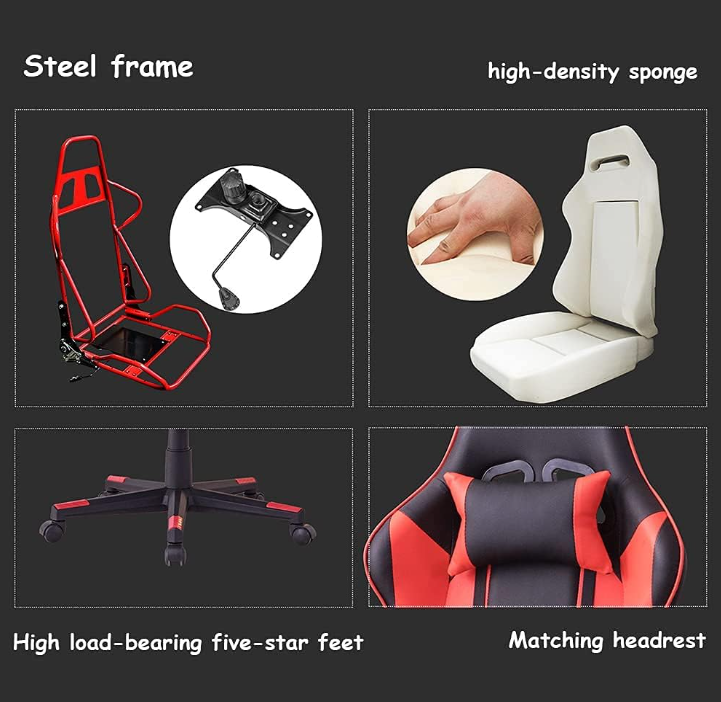 The high back gaming chair is designed to provide maximum comfort during extended gaming or working sessions. Its ergonomic structure supports the natural curve of the spine, reducing strain on the lower back and shoulders.