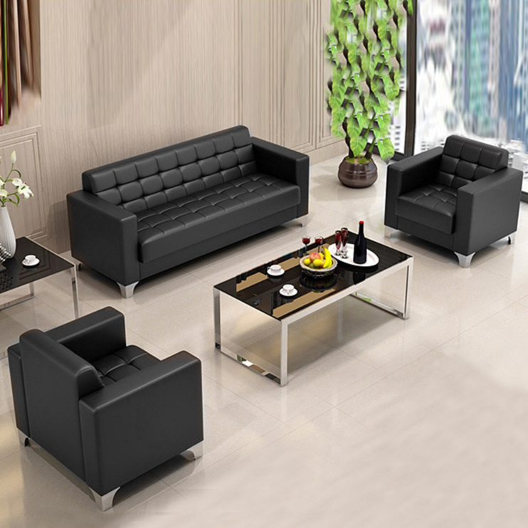Black Leather Executive Sofa backrest features a stylish square tufted pattern, adding a modern and sophisticated touch while providing additional comfort and support.